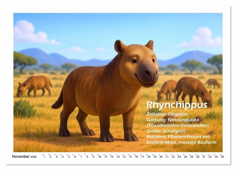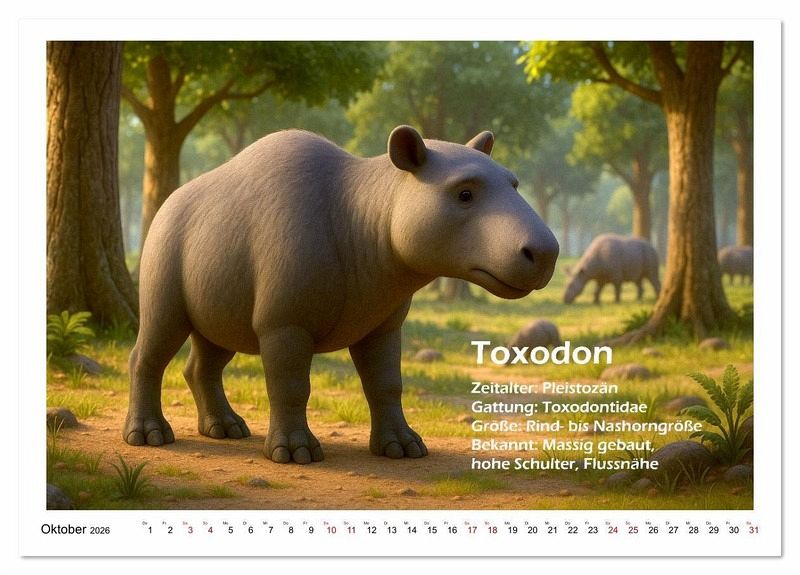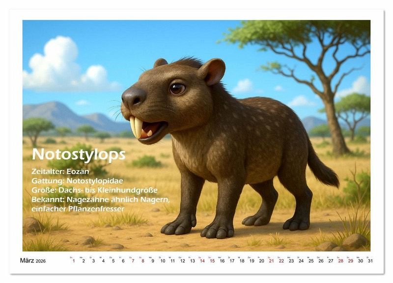 Über die ausgestorbenen Säugetiere Südamerikas ist nicht viel bekannt. Daher sind die Bilder, die man findet, auch sehr unterschiedlich. Ich habe versucht, die wichtigsten Merkmale eines jeden Tieres durch künstliche Intelligenz zum Vorschein zu bringen und gleichzeitig sollte das Ergebnis nicht gefährlich hässlich sein - sondern fröhlich und drollig. Was wissen wir schon, ob es nicht so war? Möge mein Kalender einladen, ein wenig selbst über diese Tiere zu forschen und vielleicht mehr über Paläontologie wissen zu wollen.
