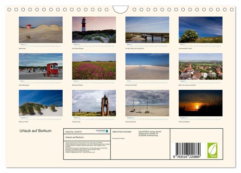 QUALITÄT - Hochwertiger Fotokalender mit 12 wunderschönen Motiven auf lichtbeständigem Bilderdruckpapier, robuste Spiralbindung mit Aufhängebügel.NACHHALTIG - deutliche Abfallreduzierung durch bedarfsgerechte Einzelstückfertigung, umweltfreundliches FSC-zertifiziertes Papier, Produktion in Deutschland, klimabewusste Logistik.PERFEKTES GESCHENK - Kalender für Freunde und Familie, für Kinder und Erwachsene, jung und alt, zu Weihnachten, Geburtstag oder zwischendurch.VIELFALT - Bildkalender in verschiedenen Formaten, z.B. DIN A5, DIN A4, DIN A3 sowie DIN A2. Ob Naturmotiv, Gemälde oder Fotos, ideal für ein persönliches Wohlfühlambiente.Die Fotografin zeigt die Insel Borkum in ihrer Vielfältigkeit. Urlaub auf Borkum ist Erholung pur. von Autor(in): Rosemarie Prediger