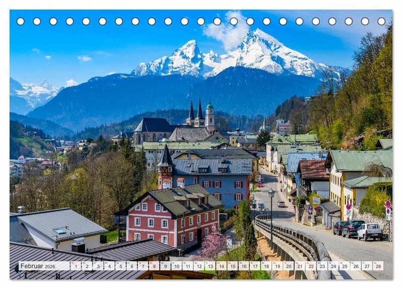 Februar: Blick auf den Ort mit Watzmann, Berchtesgaden