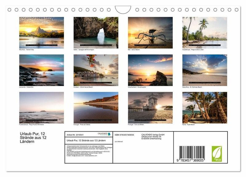 Erleben Sie das ganze Jahr über tropische Urlaubsstimmung mit unserem einzigartigen Strandkalender! Tauchen Sie ein in die Schönheit von 12 Ländern und genießen Sie jeden Monat einen atemberaubenden Strand. Lassen Sie sich von goldenem Sand, kristallklarem Wasser und atemberaubenden Küstenlandschaften verzaubern. Mit unserem Kalender holen Sie sich das Gefühl von Sommer und Entspannung direkt in Ihr Zuhause. Verpassen Sie nicht die Chance, jeden Monat in eine neue exotische Welt abzutauchen - mit unserem Kalender "12 Länder, 12 Strände".