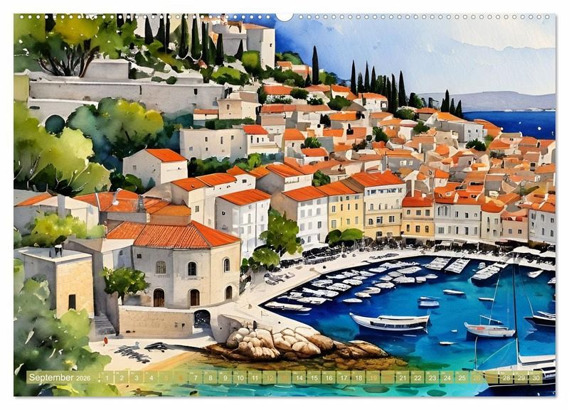 Kroatien ist ein Land in Südosteuropa, das an der Adria liegt und an Slowenien, Ungarn, Serbien, Bosnien und Herzegowina sowie Montenegro grenzt. Die Hauptstadt von Kroatien ist Zagreb. Das Land ist bekannt für seine atemberaubende Küste mit zahlreichen Inseln, kristallklarem Wasser und malerischen Küstenstädten wie beispielsweise Dubrovnik. Kroatien hat auch eine reiche kulturelle Geschichte, die sich in den gut erhaltenen mittelalterlichen Städten, antiken römischen Ruinen und beeindruckenden Kathedralen widerspiegelt. Das Land ist auch für seine Nationalparks wie den Plitvicer Seen und den Krka Wasserfällen bekannt, die eine atemberaubende natürliche Schönheit bieten. Kroatien ist ein beliebtes Reiseziel für Touristen. Hier werden zauberhafte Ziele als Aquarelle der KI vorgestellt.