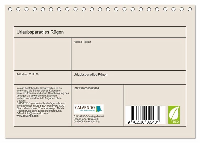 QUALITÄT - Hochwertiger Fotokalender mit 12 wunderschönen Motiven auf lichtbeständigem Bilderdruckpapier, robuste Spiralbindung.NACHHALTIG - deutliche Abfallreduzierung durch bedarfsgerechte Einzelstückfertigung, umweltfreundliches FSC-zertifiziertes Papier, Produktion in Deutschland, klimabewusste Logistik.PERFEKTES GESCHENK - Kalender für Freunde und Familie, für Kinder und Erwachsene, jung und alt, zu Weihnachten, Geburtstag oder zwischendurch.VIELFALT - Bildkalender in verschiedenen Formaten, z.B.DIN A5, DIN A4, DIN A3 sowie DIN A2. Ob Naturmotiv, Gemälde oder Fotos, ideal für ein persönliches Wohlfühlambiente.Traumhafte Fotografien der schönen Ostseeinsel Rügen von Autor(in): Andrea Potratz.