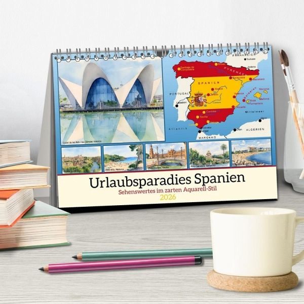 Spanien ist ein lebendiges Land Südeuropas. Am Meer - dem Atlantik und dem Mittelmeer - findet man endlose Strände, die zum Badeurlaub einladen. Die Gebirge - Pyrenäen und Sierra Nevada bieten ausgedehnte Wandermöglichkeiten. Außerdem laden viele Städte mit Tradition und ihren historischen Gebäuden ein. Jede Stadt erzählt einzigartige Kapitel aus römischer, maurischer und christlicher Geschichte, die Architektur ist vielfältig vom Altertum bis in die Moderne. All diese einzigartigen Facetten werden hier im Aquarell-Stil vorgestellt, Die Bilder entstanden aus Fotos, die mithilfe moderner Bildbearbeitung umgewandelt wurden.