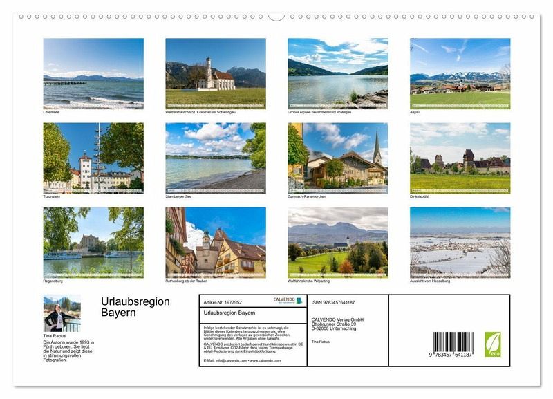 QUALITÄT - Hochwertiger Fotokalender mit 12 wunderschönen Motiven auf lichtbeständigem Bilderdruckpapier, robuste Spiralbindung mit Aufhängebügel.NACHHALTIG - deutliche Abfallreduzierung durch bedarfsgerechte Einzelstückfertigung, umweltfreundliches FSC-zertifiziertes Papier, Produktion in Deutschland, klimabewusste Logistik.PERFEKTES GESCHENK - Kalender für Freunde und Familie, für Kinder und Erwachsene, jung und alt, zu Weihnachten, Geburtstag oder zwischendurch.VIELFALT - Bildkalender in verschiedenen Formaten, z.B. DIN A5, DIN A4, DIN A3 sowie DIN A2. Ob Naturmotiv, Gemälde oder Fotos, ideal für ein persönliches Wohlfühlambiente.Beliebte Ausflugsziele in Bayern von Autor(in): Tina Rabus