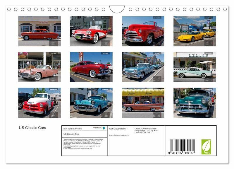 QUALITY - High-quality photo calendar with 12 beautiful images on light-resistant paper, robust spiral binding with hanger.SUSTAINABLE - Significant waste reduction due to print-on-demand production, environmentally friendly FSC-certified paper, produced in the UK, climate-conscious logistical processes.PERFECT GIFT - calendars for friends and family, for children, all ages and all occasions, from Christmas to birthdays and everything in between.LOTS OF CHOICE - Wall calendars in different sizes (DIN A4 and DIN A3), for any topic and personal taste, featuring photography, painting and illustrations.US Classic Cars, author: magic-eye.ch