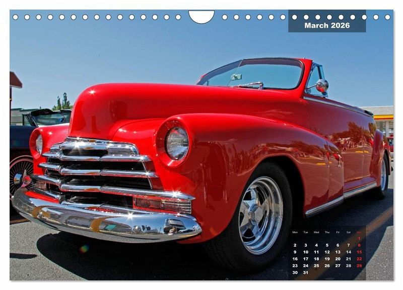 Every calendar sheet will decorate your home, your office or your garage with a new picture of an affectionately restored heritage US car.