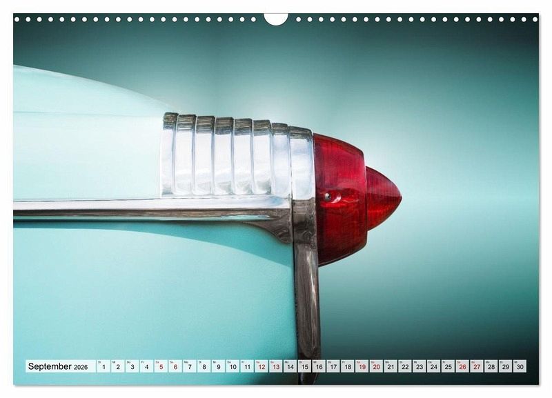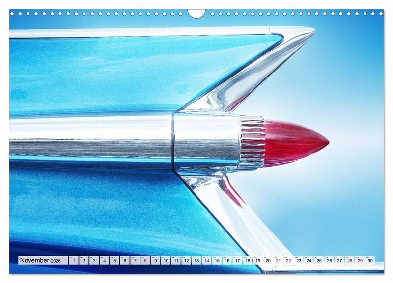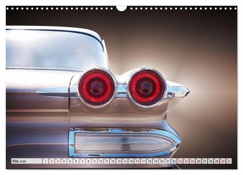Der atemberaubende Kalender ist ein Muss für jeden Liebhaber der klassischen US Autos mit ihren imposanten Fahrzeughecks und gigantischen Heckflossen.