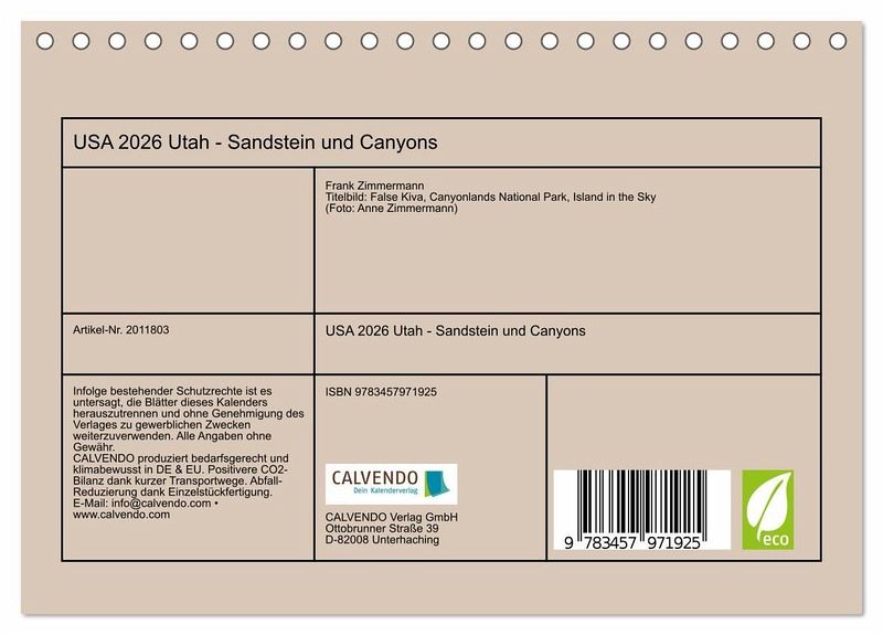 QUALITÄT - Hochwertiger Fotokalender mit 12 wunderschönen Motiven auf lichtbeständigem Bilderdruckpapier, robuste Spiralbindung.NACHHALTIG - deutliche Abfallreduzierung durch bedarfsgerechte Einzelstückfertigung, umweltfreundliches FSC-zertifiziertes Papier, Produktion in Deutschland, klimabewusste Logistik.PERFEKTES GESCHENK - Kalender für Freunde und Familie, für Kinder und Erwachsene, jung und alt, zu Weihnachten, Geburtstag oder zwischendurch.VIELFALT - Bildkalender in verschiedenen Formaten, z.B. DIN A5, DIN A4, DIN A3 sowie DIN A2. Ob Naturmotiv, Gemälde oder Fotos, ideal für ein persönliches Wohlfühlambiente.Die schönsten Regionen Utahs in faszinierenden Bildern von Autor(in): Frank Zimmermann