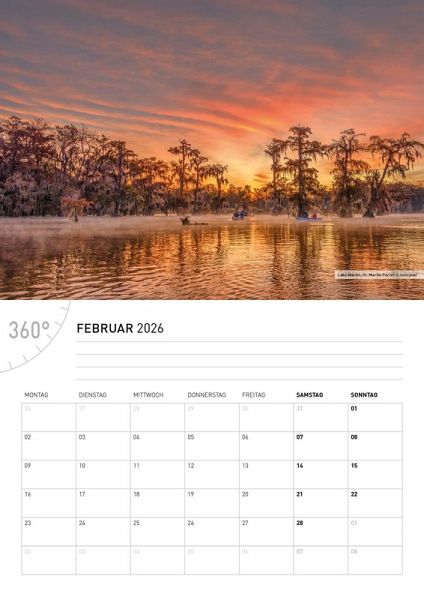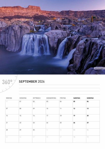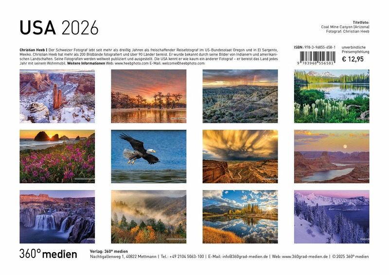 Der USA Broschürenkalender 2026 erscheint im kompakten A4 Format (29,7 x 21 cm). Auf hochwertigem Papier präsentiert er traumhafte Bilder. Aufgeklappt auf A3 Format (29,7 x 42 cm) bietet er im Kalendarium Platz für Termine und Notizen.