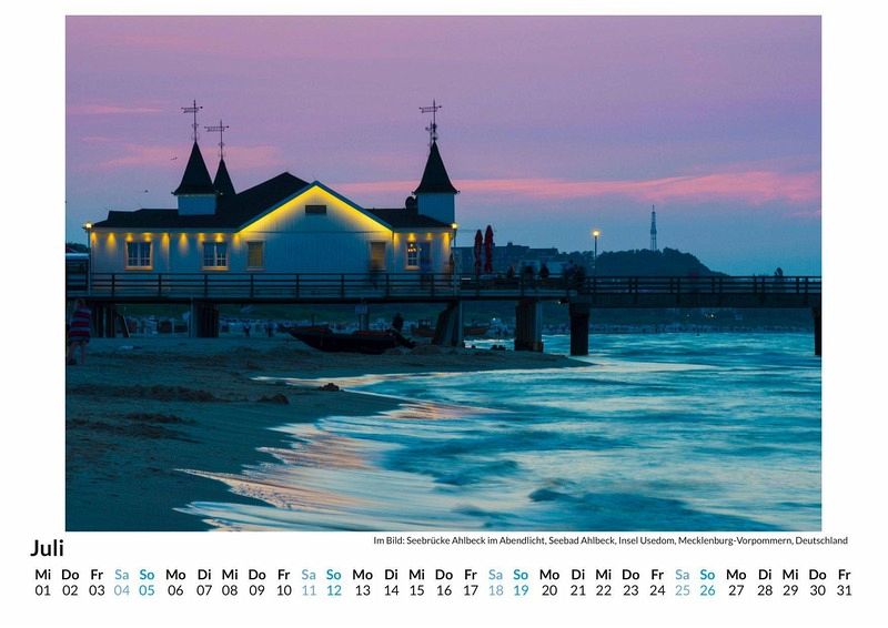 Entdecken Sie die Schönheit der Sonneninsel Usedom das ganze Jahr über mit unserem exklusiven Wandkalender! 12 atemberaubende Motive entführen Sie an die malerischen Strände, idyllischen Seebrücken und charmanten Küstenorte dieses Top-Reiseziels. Gedruckt auf hochwertigem, lichtbeständigem Bilderdruckpapier, bleiben die Farben der Natur lebendig und strahlend. Nachhaltigkeit liegt uns am Herzen: Unsere Kalender werden in Deutschland auf FSC-zertifiziertem Papier produziert. Holen Sie sich ein Stück Urlaubsfeeling nach Hause und lassen Sie sich Monat für Monat von der einzigartigen Atmosphäre Usedoms verzaubern. Perfekt als Geschenk oder für die eigene Wand! Hochwertig Erleben Sie ein Jahr voller Eleganz mit unserem Premium-Fotokalender. Jedes der 12 Motive ist auf hochwertigem, lichtbeständigem Bilderdruckpapier gedruckt, um die Lebendigkeit jedes Bildes zu bewahren. Die robuste Spiralbindung gewährleistet Langlebigkeit und einfache Handhabung. Nachhaltig Unser Engagement für die Umwelt spiegelt sich in jedem Exemplar wider. Durch die Produktion auf Abruf reduzieren wir signifikant unseren Abfall. Wir verwenden ausschließlich umweltfreundliches, FSC-zertifiziertes Papier. Stolz gefertigt in Deutschland, achten wir bei unserer Logistik auf Klimaschutz, um unseren ökologischen Fußabdruck zu minimieren. Das ideale Geschenk Dieser Kalender ist das perfekte Präsent für jeden Anlass - ob Weihnachten, Geburtstage oder einfach als liebevolle Aufmerksamkeit zwischendurch. Geeignet für Freunde, Familie, Kinder und Erwachsene gleichermaßen, bereichert er jedes Zuhause mit seiner Vielfalt und Schönheit, unabhängig vom Alter der Beschenkten.
