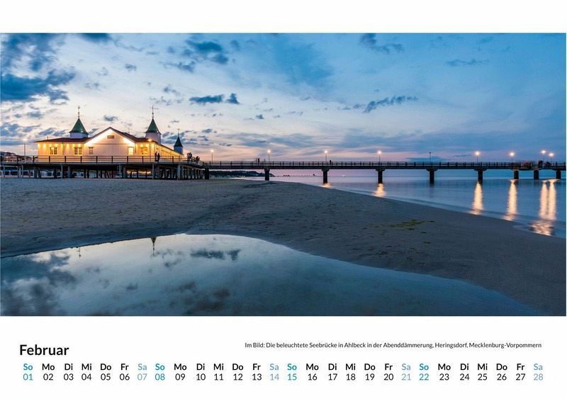Entdecken Sie die Schönheit der Sonneninsel Usedom mit unserem exklusiven Wandkalender! Lassen Sie sich Monat für Monat von 12 atemberaubenden Motiven verzaubern, die die malerischen Strände, idyllischen Seebrücken und unberührte Natur dieser einzigartigen Insel zeigen. Gedruckt auf hochwertigem, lichtbeständigem Bilderdruckpapier, bringt dieser Kalender die Magie Usedoms direkt in Ihr Zuhause. Nachhaltigkeit liegt uns am Herzen: Unsere Kalender werden in Deutschland auf FSC-zertifiziertem Papier produziert. Perfekt als Geschenk oder für die eigene Wand - holen Sie sich ein Stück Usedom und träumen Sie sich das ganze Jahr über ans Meer! Hochwertig Erleben Sie ein Jahr voller Eleganz mit unserem Premium-Fotokalender. Jedes der 12 Motive ist auf hochwertigem, lichtbeständigem Bilderdruckpapier gedruckt, um die Lebendigkeit jedes Bildes zu bewahren. Die robuste Spiralbindung gewährleistet Langlebigkeit und einfache Handhabung. Nachhaltig Unser Engagement für die Umwelt spiegelt sich in jedem Exemplar wider. Durch die Produktion auf Abruf reduzieren wir signifikant unseren Abfall. Wir verwenden ausschließlich umweltfreundliches, FSC-zertifiziertes Papier. Stolz gefertigt in Deutschland, achten wir bei unserer Logistik auf Klimaschutz, um unseren ökologischen Fußabdruck zu minimieren. Das ideale Geschenk Dieser Kalender ist das perfekte Präsent für jeden Anlass - ob Weihnachten, Geburtstage oder einfach als liebevolle Aufmerksamkeit zwischendurch. Geeignet für Freunde, Familie, Kinder und Erwachsene gleichermaßen, bereichert er jedes Zuhause mit seiner Vielfalt und Schönheit, unabhängig vom Alter der Beschenkten.