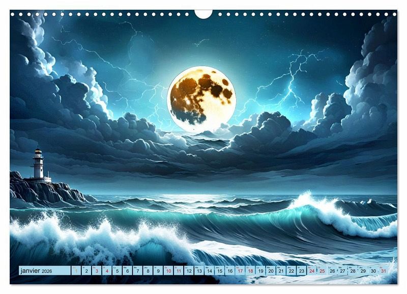 Plongez dans le monde puissant des vagues tumultueuses de l'océan avec notre calendrier unique, créé avec la puissance de l'intelligence artificielle.Découvrez la beauté majestueuse et l'énergie bouillonnante des vagues déchaînées et de la météo sauvage. Laissez-vous inspirer par la force indomptable de la nature et revivez chaque jour la fascination de la mer. Ce calendrier impressionnant fait entrer la beauté de la mer déchaînée dans votre maison et, en tant que cadeau, fait la joie des amoureux de la mer.