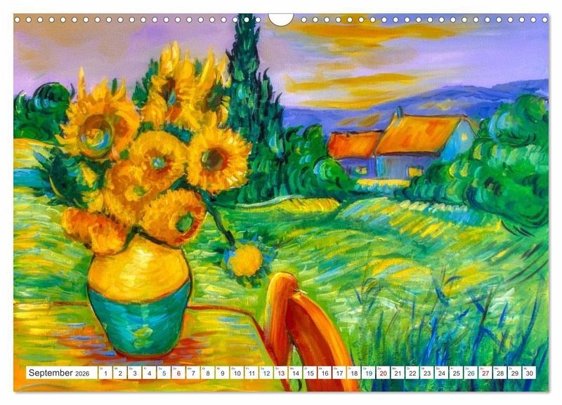 Van Gogh, wer kennt ihn nicht. In diesem Kalender wurden seine Werke von einem ortsansässigen Künstler neu interpretiert. In Zusammenarbeit mit dem Fotografen entstand ein farbenfrohes Potpourri , das mit einem Augenzwinkern an Van Gogh erinnert.