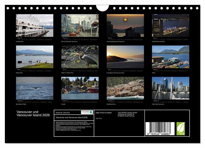 QUALITÄT - Hochwertiger Fotokalender mit 12 wunderschönen Motiven auf lichtbeständigem Bilderdruckpapier, robuste Spiralbindung mit Aufhängebügel.NACHHALTIG - deutliche Abfallreduzierung durch bedarfsgerechte Einzelstückfertigung, umweltfreundliches FSC-zertifiziertes Papier, Produktion in Deutschland, klimabewusste Logistik.PERFEKTES GESCHENK - Kalender für Freunde und Familie, für Kinder und Erwachsene, jung und alt, zu Weihnachten, Geburtstag oder zwischendurch.VIELFALT - Bildkalender in verschiedenen Formaten, z.B. DIN A5, DIN A4, DIN A3 sowie DINA2. Ob Naturmotiv, Gemälde oder Fotos, ideal für ein persönliches Wohlfühlambiente.Vancouver, das Tor zu Vancouver Island und Hauptstadt British Columbias von Autor(in): Ingrid Franz