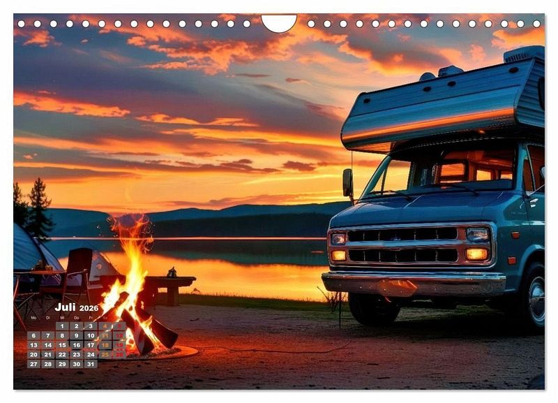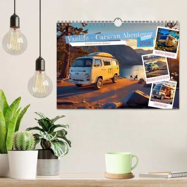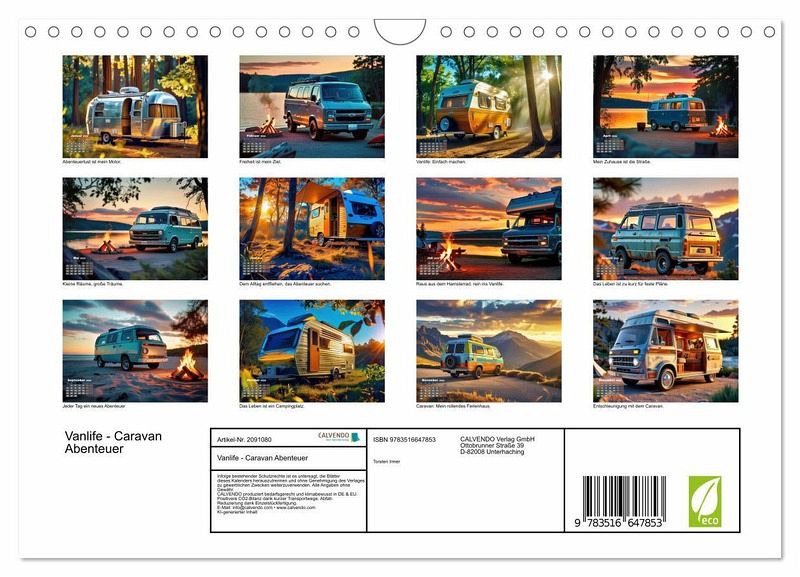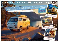 Vanlife - Dein Abenteuer im Kalenderformat! Jeden Monat ein neues Ziel, jeden Tag ein Stück Freiheit. Unser Caravan-Abenteuer-Kalender bringt das Vanlife-Feeling direkt an deine Wand - mit inspirierenden Bildern für Camperherzen.