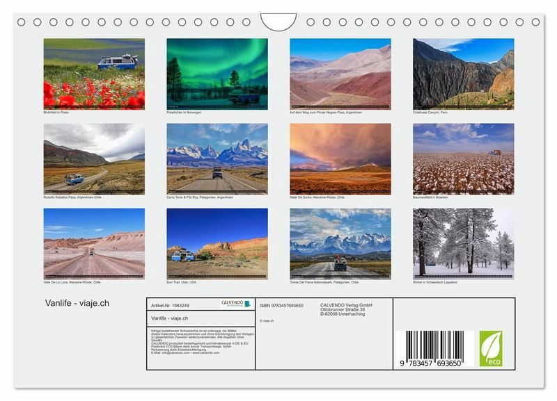 QUALITÄT - Hochwertiger Fotokalender mit 12 wunderschönen Motiven auf lichtbeständigem Bilderdruckpapier, robuste Spiralbindung mit Aufhängebügel.NACHHALTIG - deutliche Abfallreduzierung durch bedarfsgerechte Einzelstückfertigung, umweltfreundliches FSC-zertifiziertes Papier, Produktion in Deutschland, klimabewusste Logistik.PERFEKTES GESCHENK - Kalender für Freunde und Familie, für Kinder und Erwachsene, jung und alt, zu Weihnachten, Geburtstag oder zwischendurch.VIELFALT - Bildkalender in verschiedenen Formaten, z.B. DIN A5, DIN A4, DIN A3 sowie DIN A2. Ob Naturmotiv, Gemälde oder Fotos, ideal für ein persönliches Wohlfühlambiente.Ein Vintage Campervan auf Weltreise von Autor(in): viaje.ch