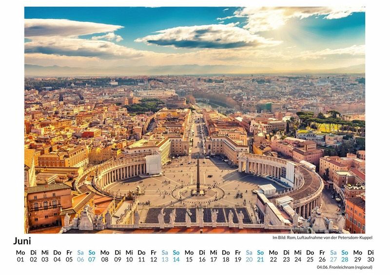 Entdecken Sie die faszinierende Welt des Vatikans mit unserem exklusiven Wandkalender! Tauchen Sie Monat für Monat in die atemberaubende Schönheit dieses einzigartigen Stadtstaates ein - mitten in Rom, dem Herzen Italiens. Jedes der 12 sorgfältig ausgewählten Motive fängt die spirituelle und architektonische Pracht des Vatikans ein, von der majestätischen Peterskirche bis hin zu den kunstvollen Details der Sixtinischen Kapelle. Gedruckt auf hochwertigem, lichtbeständigem Bilderdruckpapier und in Deutschland auf FSC-zertifiziertem Papier produziert, ist dieser Kalender nicht nur ein optisches Highlight, sondern auch ein nachhaltiges Statement. Perfekt für Liebhaber von Kunst, Kultur und Geschichte! Hochwertig Erleben Sie ein Jahr voller Eleganz mit unserem Premium-Fotokalender. Jedes der 12 Motive ist auf hochwertigem, lichtbeständigem Bilderdruckpapier gedruckt, um die Lebendigkeit jedes Bildes zu bewahren. Die robuste Spiralbindung gewährleistet Langlebigkeit und einfache Handhabung. Nachhaltig Unser Engagement für die Umwelt spiegelt sich in jedem Exemplar wider. Durch die Produktion auf Abruf reduzieren wir signifikant unseren Abfall. Wir verwenden ausschließlich umweltfreundliches, FSC-zertifiziertes Papier. Stolz gefertigt in Deutschland, achten wir bei unserer Logistik auf Klimaschutz, um unseren ökologischen Fußabdruck zu minimieren. Das ideale Geschenk Dieser Kalender ist das perfekte Präsent für jeden Anlass - ob Weihnachten, Geburtstage oder einfach als liebevolle Aufmerksamkeit zwischendurch. Geeignet für Freunde, Familie, Kinder und Erwachsene gleichermaßen, bereichert er jedes Zuhause mit seiner Vielfalt und Schönheit, unabhängig vom Alter der Beschenkten.