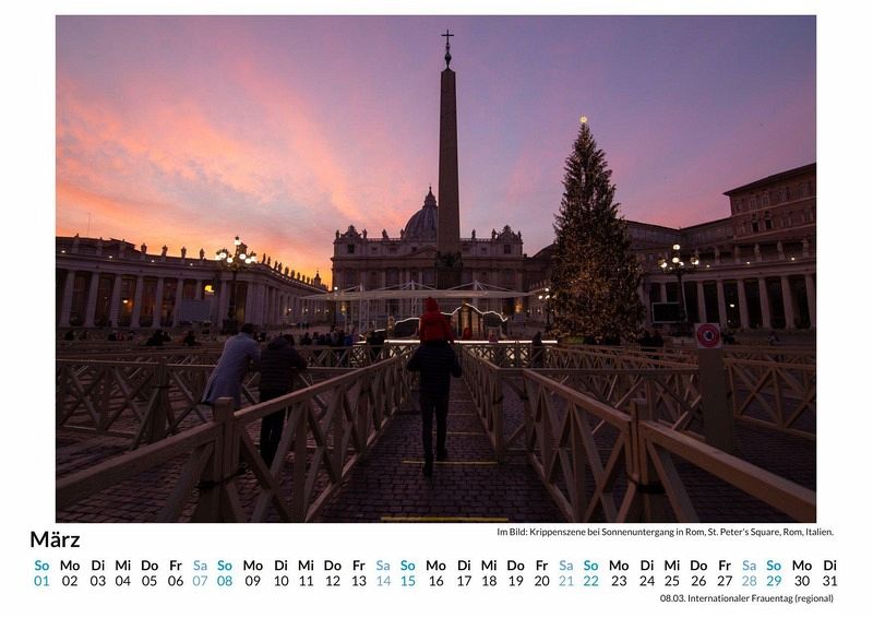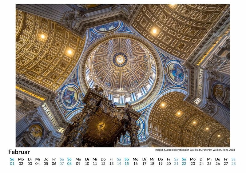 Entdecken Sie die faszinierende Welt der Vatikanstadt mit unserem exklusiven Wandkalender! Lassen Sie sich Monat für Monat von 12 atemberaubenden Motiven des kleinsten Staates der Welt verzaubern - von der majestätischen Peterskirche bis hin zu den kunstvollen Details der Sixtinischen Kapelle. Gedruckt auf hochwertigem, lichtbeständigem Bilderdruckpapier, bringt dieser Kalender die einzigartige Atmosphäre des Vatikans direkt in Ihr Zuhause. Nachhaltig in Deutschland auf FSC-zertifiziertem Papier produziert, ist er nicht nur ein optisches Highlight, sondern auch umweltfreundlich. Perfekt als Geschenk oder für Ihre eigenen vier Wände - sichern Sie sich jetzt Ihr Stück Vatikan! Hochwertig Erleben Sie ein Jahr voller Eleganz mit unserem Premium-Fotokalender. Jedes der 12 Motive ist auf hochwertigem, lichtbeständigem Bilderdruckpapier gedruckt, um die Lebendigkeit jedes Bildes zu bewahren. Die robuste Spiralbindung gewährleistet Langlebigkeit und einfache Handhabung. Nachhaltig Unser Engagement für die Umwelt spiegelt sich in jedem Exemplar wider. Durch die Produktion auf Abruf reduzieren wir signifikant unseren Abfall. Wir verwenden ausschließlich umweltfreundliches, FSC-zertifiziertes Papier. Stolz gefertigt in Deutschland, achten wir bei unserer Logistik auf Klimaschutz, um unseren ökologischen Fußabdruck zu minimieren. Das ideale Geschenk Dieser Kalender ist das perfekte Präsent für jeden Anlass - ob Weihnachten, Geburtstage oder einfach als liebevolle Aufmerksamkeit zwischendurch. Geeignet für Freunde, Familie, Kinder und Erwachsene gleichermaßen, bereichert er jedes Zuhause mit seiner Vielfalt und Schönheit, unabhängig vom Alter der Beschenkten.