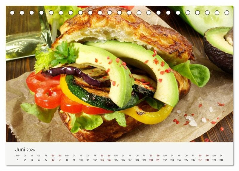 Dekorativer Wandkalender für die Küche mit Bildern von veganen Gerichten und Snacks. Herzhafte und süße Speisen aus kalter und warmer Küche. "Dieser qualitativ hochwertige Kalender gehört zur exklusiven CALVENDO Gold-Edition."