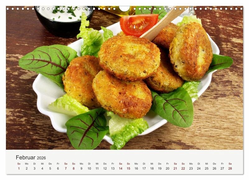 Dekorativer Wandkalender für die Küche mit Bildern von veganen Gerichten und Snacks. Herzhafte und süße Speisen aus kalter und warmer Küche. "Dieser qualitativ hochwertige Kalender gehört zur exklusiven CALVENDO Gold-Edition."