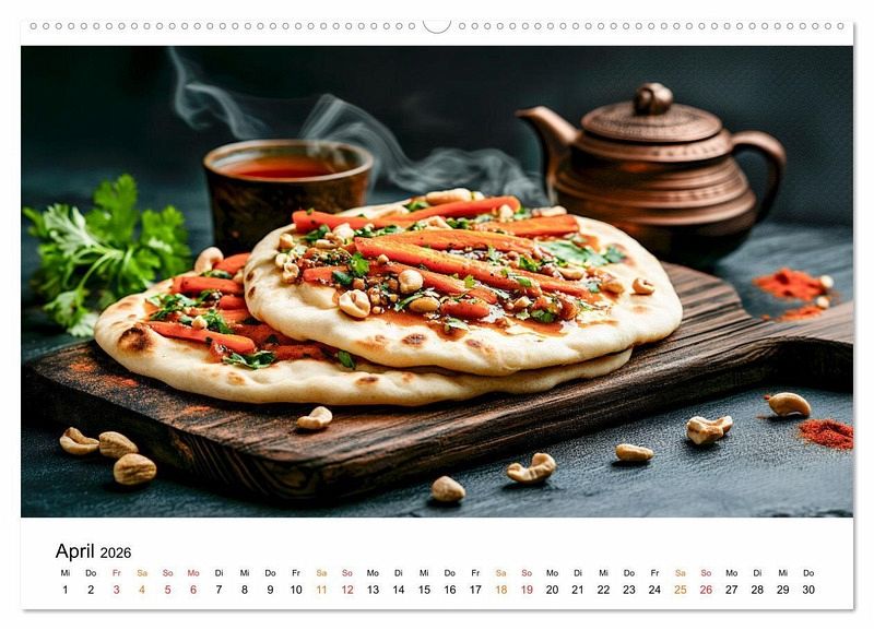 April: Naan-Brot mit gerösteten Karottenstreifen und Cashew-Chutney-Sauce