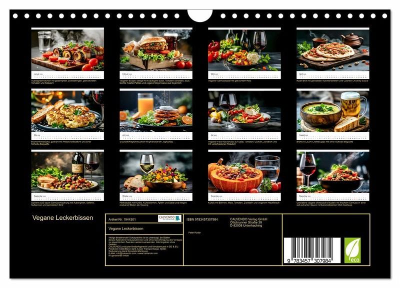 QUALITÄT - Hochwertiger Fotokalender mit 12 wunderschönen Motiven auf lichtbeständigem Bilderdruckpapier, robuste Spiralbindung mit Aufhängebügel.NACHHALTIG - deutliche Abfallreduzierung durch bedarfsgerechte Einzelstückfertigung, umweltfreundliches FSC-zertifiziertes Papier, Produktion in Deutschland, klimabewusste Logistik.PERFEKTES GESCHENK - Kalender für Freunde und Familie, für Kinder und Erwachsene, jung und alt, zu Weihnachten, Geburtstag oder zwischendurch.VIELFALT - Bildkalender in verschiedenen Formaten, z.B. DIN A5, DIN A4, DIN A3 sowie DIN A2. Ob Naturmotiv, Gemälde oder Fotos, ideal für ein persönliches Wohlfühlambiente.Perfekt für alle, die vegan genießen möchten. von Autor(in): Peter Roder