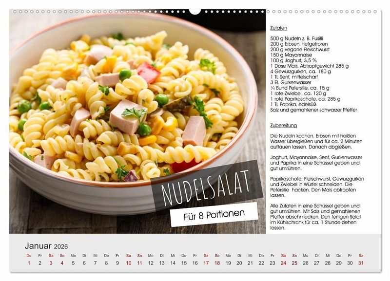 Jeden Monat ein neues Highlight: dieser Kalender vereint tolle Food-Fotografie mit köstlichen Rezepten, die man ganz einfach nachkochen kann. Von herzhaften Pasta-Gerichten bis hin zu leichten Salaten - lassen Sie sich Monat für Monat inspirieren und entdecken Sie neue Lieblingsrezepte.