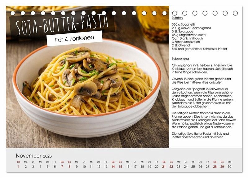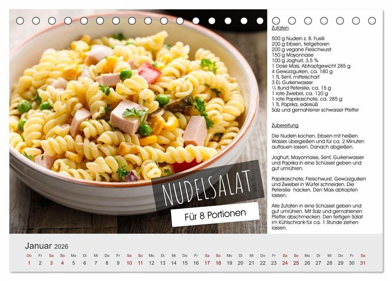 Jeden Monat ein neues Highlight: dieser Kalender vereint tolle Food-Fotografie mit köstlichen Rezepten, die man ganz einfach nachkochen kann. Von herzhaften Pasta-Gerichten bis hin zu leichten Salaten - lassen Sie sich Monat für Monat inspirieren und entdecken Sie neue Lieblingsrezepte.