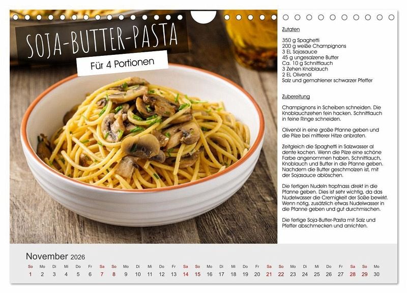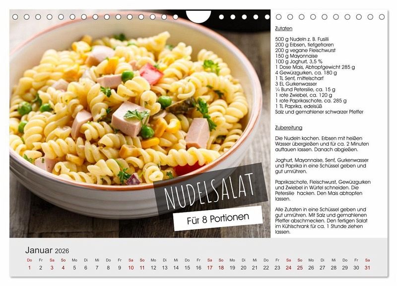 Jeden Monat ein neues Highlight: dieser Kalender vereint tolle Food-Fotografie mit köstlichen Rezepten, die man ganz einfach nachkochen kann. Von herzhaften Pasta-Gerichten bis hin zu leichten Salaten - lassen Sie sich Monat für Monat inspirieren und entdecken Sie neue Lieblingsrezepte.