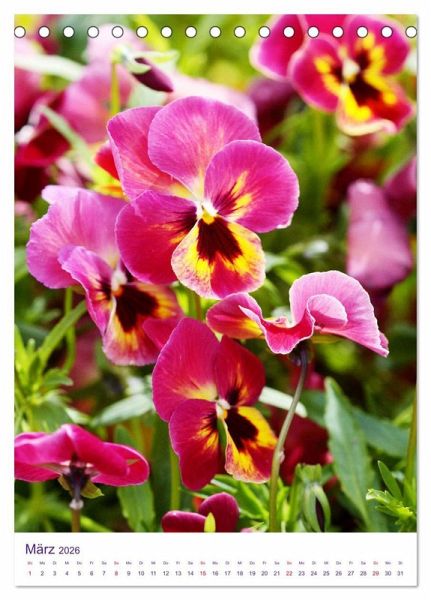 Die bekanntesten und beliebtesten Gartenveilchen sind Stiefmütterchen und Hornveilchen. Schon früh im Jahr sorgen diese liebenswerten Pflanzen für Farbe im Garten. Ihre Blüten sind in der Regel mehrfarbig und oft meint man in ein skurril zerknautschtes Gesicht zu schauen. Dieser Kalender erfreut Sie mit einem bunten Blütenpotpourri und bereichert Sie für ein volles Jahr.