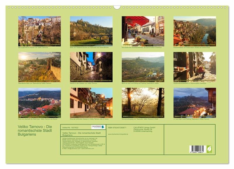 Der neue Kalender von drachenkind-fotografie über Veliko Tarnovo, die "Stadt der Zaren", bietet faszinierende Einblicke in Bulgariens reiche Geschichte. Die Stadt erstreckt sich über drei Hügel - Tsarevets, Trapezitsa und Sveta Gora - und bietet spektakuläre Ausblicke auf den Jantra-Fluss. Entdecken Sie die Festung Tsarevets, einst Sitz der bulgarischen Kaiser, sowie den legendären Tunnel, durch den die Eisenbahn unter der Stadt hindurchfährt. Genießen Sie die malerische Love Swing mit fantastischem Ausblick. Veliko Tarnovo ist ein kulturelles Zentrum mit Museen, Theatern und einer lebendigen…mehr
