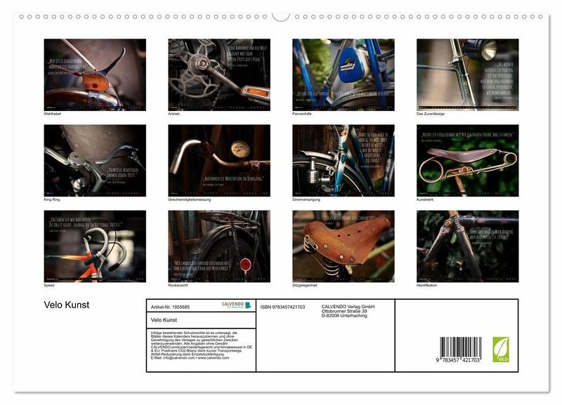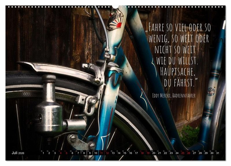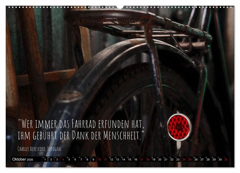 PREMIUM-LINIE - Brillanter Fotokalender mit 12 wunderschönen Motiven, Kunstdruck in Hochglanz in Museumsqualität.QUALITÄT - edle Materialien, stabile Rückwand mit 2 innovativen Einstecktaschen für eine optimale Präsentation an der Wand.NACHHALTIG - deutliche Abfallreduzierung durch bedarfsgerechte Einzelstückfertigung, umweltfreundliches FSC-zertifiziertes Papier, Produktion in Deutschland, klimabewusste Logistik.PERFEKTES GESCHENK - Kalender für Freunde und Familie, für Kinder und Erwachsene, jung und alt, zu Weihnachten, Geburtstag oder zwischendurch.Ästhetische Detail Aufnahmen von nostalgischen Fahrrädern mit Zitaten die zum schmunzeln und nachdenken anregen. von Autor(in): Andreas Marutschke