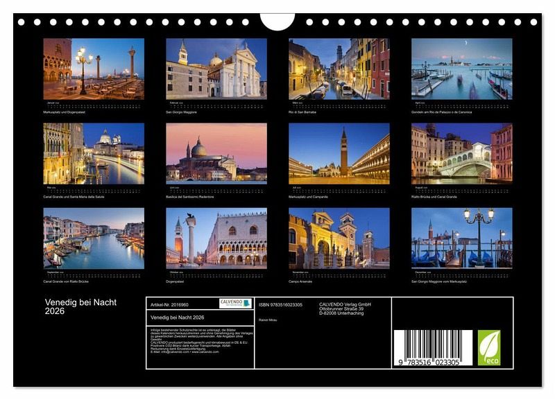 Immer wieder besucht der Fotograf Rainer Mirau die einzigartige italienische Stadt, um die schönsten Motive professionell abzulichten. Sehen Sie Venedig in diesem wundervoll zusammengestellten Kalender in seiner vollen Pracht.