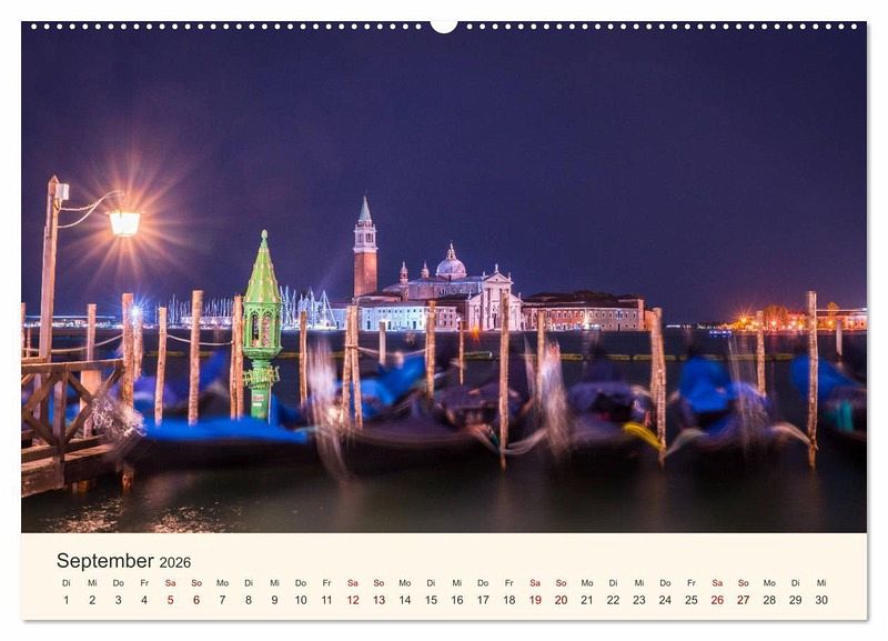 Die schönsten Momente aus Venedig festgehalten bei Tag und Nacht. Einzigartige Ansichten der Lagunenstadt in 12 Motiven. Beeindruckende Aufnahmen von bekannten und unbekannten Gebäuden, Gassen und Plätzen in ganz besonderen Lichtstimmungen.