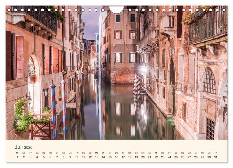 Die schönsten Momente aus Venedig festgehalten bei Tag und Nacht. Einzigartige Ansichten der Lagunenstadt in 12 Motiven. Beeindruckende Aufnahmen von bekannten und unbekannten Gebäuden, Gassen und Plätzen in ganz besonderen Lichtstimmungen. Dieser qualitativ hochwertige Kalender gehört zur exklusiven CALVENDO Gold-Edition.