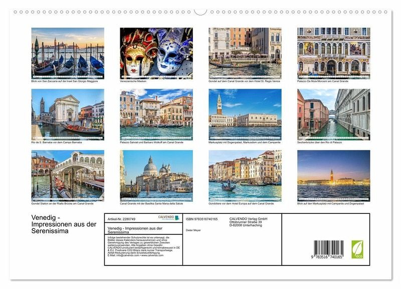 PREMIUM-LINIE - Brillanter Fotokalender mit 12 wunderschönen Motiven, Kunstdruck in Hochglanz in Museumsqualität.QUALITÄT - edle Materialien, stabile Rückwand mit 2 innovativen Einstecktaschen für eine optimale Präsentation an der Wand.NACHHALTIG - deutliche Abfallreduzierung durch bedarfsgerechte Einzelstückfertigung, umweltfreundliches FSC-zertifiziertes Papier, Produktion in Deutschland, klimabewusste Logistik.PERFEKTES GESCHENK - Kalender für Freunde und Familie, für Kinder und Erwachsene, jung und alt, zu Weihnachten, Geburtstag oder zwischendurch.Venezianischer Zauber in der Lagune von Autor(in): Dieter Meyer