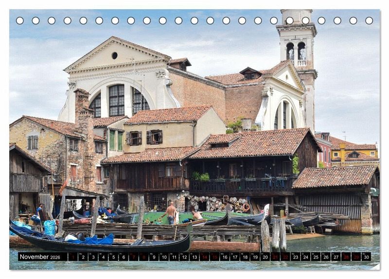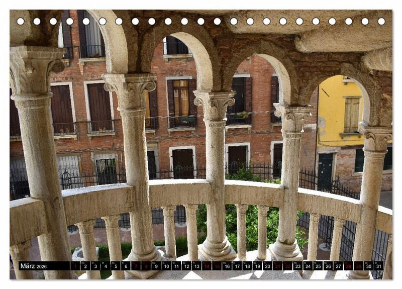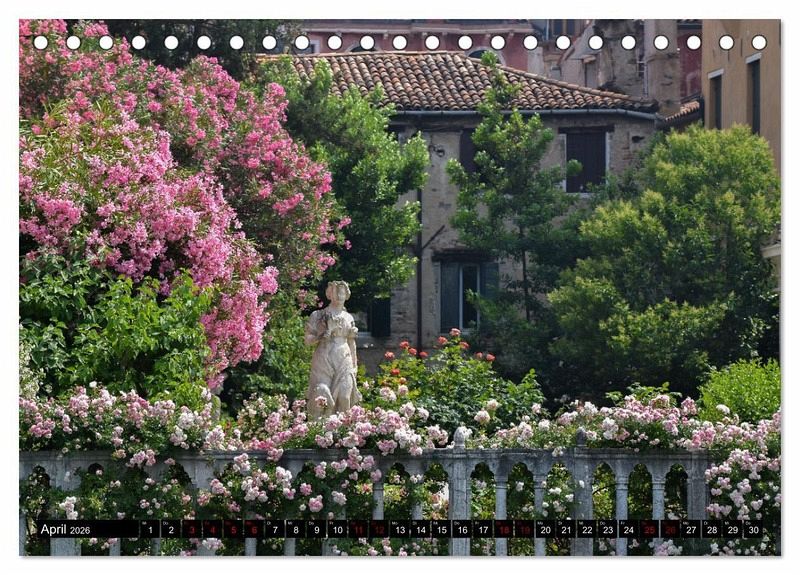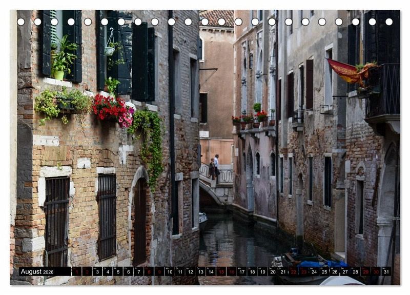 Dieser Kalender kann als Inspiration bei einer Besichtigung von Venedig dienen. Er zeigt die noch stille Lagunenstadt am frühen Morgen samt ihren Gärten am Canal Grande. Neue Blickperspektiven öffnen sich, auch abseits der bekannten Sehenswürdigkeiten der malerischen Stadt.