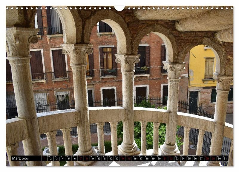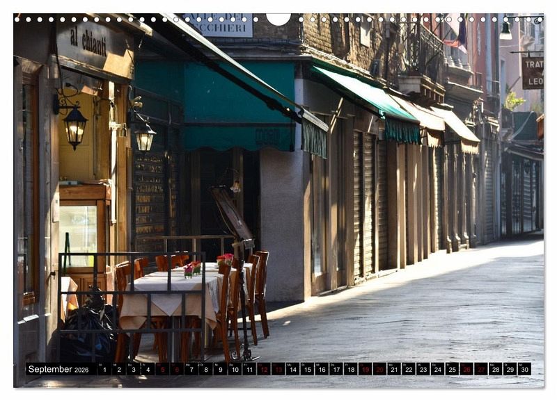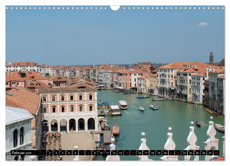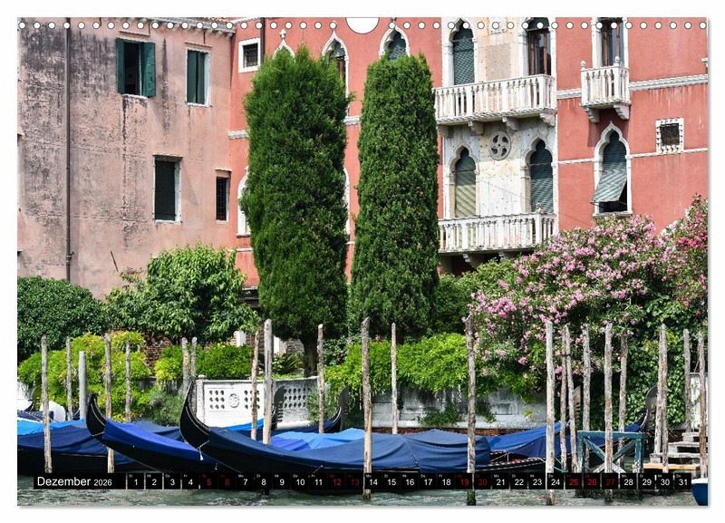 Dieser Kalender kann als Inspiration bei einer Besichtigung von Venedig dienen. Er zeigt die noch stille Lagunenstadt am frühen Morgen samt ihren Gärten am Canal Grande. Neue Blickperspektiven öffnen sich, auch abseits der bekannten Sehenswürdigkeiten der malerischen Stadt.