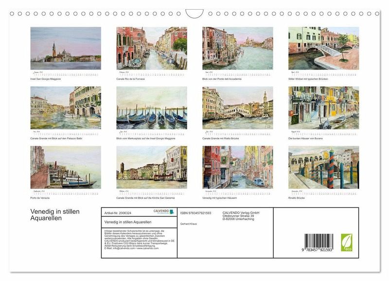 QUALITÄT - Hochwertiger Fotokalender mit 12 wunderschönen Motiven auf lichtbeständigem Bilderdruckpapier, robuste Spiralbindung mit Aufhängebügel.NACHHALTIG - deutliche Abfallreduzierung durch bedarfsgerechte Einzelstückfertigung, umweltfreundliches FSC-zertifiziertes Papier, Produktion in Deutschland, klimabewusste Logistik.PERFEKTES GESCHENK - Kalender für Freunde und Familie, für Kinder und Erwachsene, jung und alt, zu Weihnachten, Geburtstag oder zwischendurch.VIELFALT - Bildkalender in verschiedenen Formaten, z.B. DIN A5, DIN A4, DIN A3 sowie DIN A2. Ob Naturmotiv, Gemälde oder Fotos, ideal für ein persönliches Wohlfühlambiente.Venedig - Lagunenstadt in sanftem Tageslicht von Autor(in): Gerhard Kraus