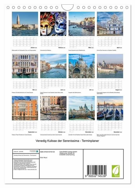 QUALITÄT - Hochwertiger Fotokalender mit 12 wunderschönen Motiven auf lichtbeständigem Bilderdruckpapier, robuste Spiralbindung mit Aufhängebügel.NACHHALTIG - deutliche Abfallreduzierung durch bedarfsgerechte Einzelstückfertigung, umweltfreundliches FSC-zertifiziertes Papier, Produktion in Deutschland, klimabewusste Logistik.PERFEKTES GESCHENK - Kalender für Freunde und Familie, für Kinder und Erwachsene, jung und alt, zu Weihnachten, Geburtstag oder zwischendurch.VIELFALT - Bildkalender in verschiedenen Formaten, z.B. DIN A5, DIN A4, DIN A3 sowie DIN A2. Ob Naturmotiv, Gemälde oder Fotos, ideal für ein persönliches Wohlfühlambiente.Venezianischer Zauber in der Lagune. von Autor(in): Dieter Meyer