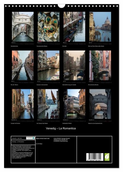 QUALITÄT - Hochwertiger Fotokalender mit 12 wunderschönen Motiven auf lichtbeständigem Bilderdruckpapier, robuste Spiralbindung mit Aufhängebügel.NACHHALTIG - deutliche Abfallreduzierung durch bedarfsgerechte Einzelstückfertigung, umweltfreundliches FSC-zertifiziertes Papier, Produktion in Deutschland, klimabewusste Logistik.PERFEKTES GESCHENK - Kalender für Freunde und Familie, für Kinder und Erwachsene, jung und alt, zu Weihnachten, Geburtstag oder zwischendurch.VIELFALT - Bildkalender in verschiedenen Formaten, z.B. DIN A5, DIN A4, DIN A3 sowie DIN A2. Ob Naturmotiv, Gemälde oder Fotos, ideal für ein persönliches Wohlfühlambiente.Venedig - einzigartig - romantisch von Autor(in): ChriSpa