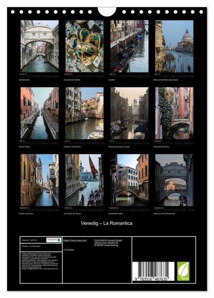 QUALITÄT - Hochwertiger Fotokalender mit 12 wunderschönen Motiven auf lichtbeständigem Bilderdruckpapier, robuste Spiralbindung mit Aufhängebügel.NACHHALTIG - deutliche Abfallreduzierung durch bedarfsgerechte Einzelstückfertigung, umweltfreundliches FSC-zertifiziertes Papier, Produktion in Deutschland, klimabewusste Logistik.PERFEKTES GESCHENK - Kalender für Freunde und Familie, für Kinder und Erwachsene, jung und alt, zu Weihnachten, Geburtstag oder zwischendurch.VIELFALT - Bildkalender in verschiedenen Formaten, z.B. DIN A5, DIN A4, DIN A3 sowie DIN A2. Ob Naturmotiv, Gemälde oder Fotos, ideal für ein persönliches Wohlfühlambiente.Venedig - einzigartig - romantisch von Autor(in): ChriSpa