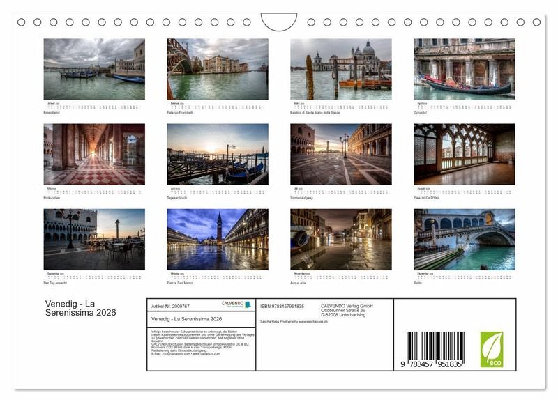 QUALITÄT - Hochwertiger Fotokalender mit 12 wunderschönen Motiven auf lichtbeständigem Bilderdruckpapier, robuste Spiralbindung mit Aufhängebügel.NACHHALTIG - deutliche Abfallreduzierung durch bedarfsgerechte Einzelstückfertigung, umweltfreundliches FSC-zertifiziertes Papier, Produktion in Deutschland, klimabewusste Logistik.PERFEKTES GESCHENK - Kalender für Freunde und Familie, für Kinder und Erwachsene, jung und alt, zu Weihnachten, Geburtstag oder zwischendurch.VIELFALT - Bildkalender in verschiedenen Formaten, z.B. DIN A5, DIN A4, DIN A3 sowie DIN A2. Ob Naturmotiv, Gemälde oder Fotos, ideal für ein persönliches Wohlfühlambiente.Venedig La Serenissima 2017 von Autor(in): saschahaas photography