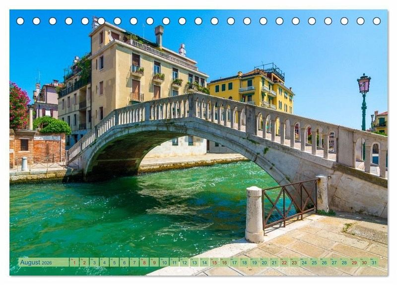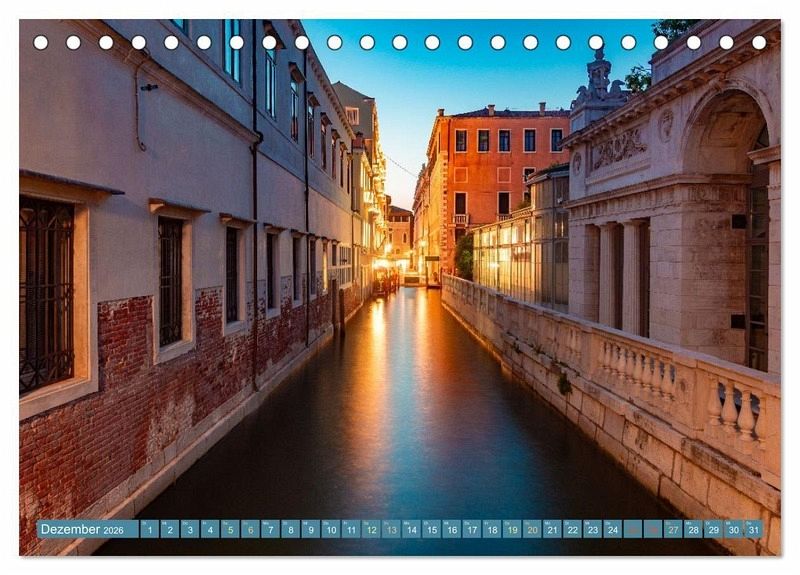 Tauchen Sie ein in die zeitlose Schönheit Venedigs! Dieser Kalender fängt die Magie der weltberühmten Lagunenstadt in stimmungsvollen Bildern ein - von stillen Gassen bis zu den imposanten Bauwerken im goldenen Abendlicht. Monat für Monat erleben Sie die romantische Atmosphäre und den unverwechselbaren Charme einer Stadt, die ihresgleichen sucht. Ideal zum Träumen - oder als Geschenk für Italienliebhaber.