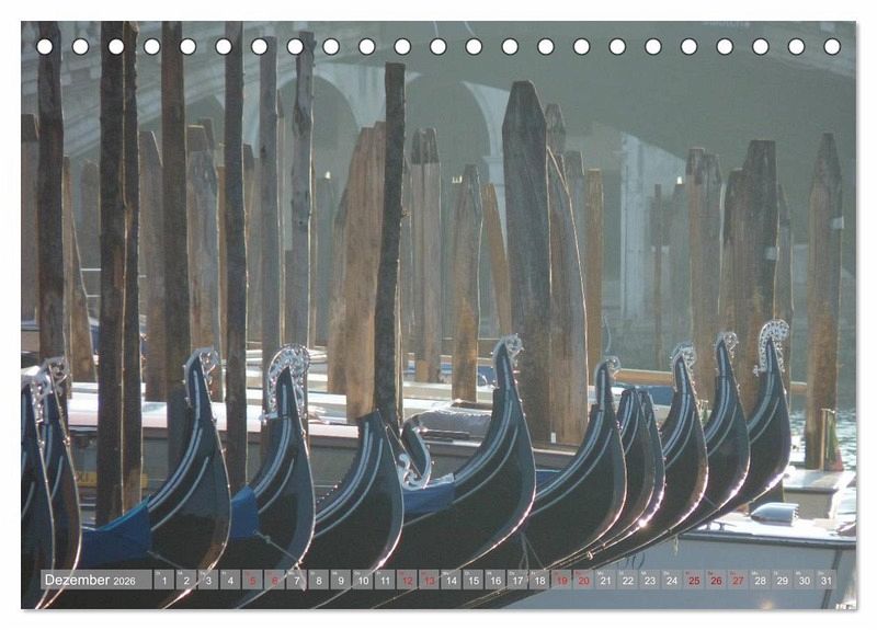 Denn mit jedem Schritt kommen auch neue staunenswerte Eindrücke in den Blick, Eindrücke, von denen dieser Kalender nur wenige wiedergeben kann, die den bereits geübten Venedigbesucher aber an wunderbare Stunden erinnern und all diejenigen, die das Glück eines Besuches dieser Perle der Adria noch nicht genießen durften, mit einer sanften Sehnsucht nach einer Reise dorthin so leicht wie leise locken.
