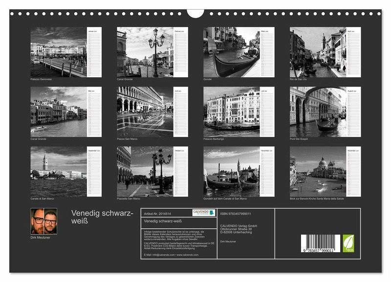QUALITÄT - Hochwertiger Fotokalender mit 12 wunderschönen Motiven auf lichtbeständigem Bilderdruckpapier, robuste Spiralbindung mit Aufhängebügel.NACHHALTIG - deutliche Abfallreduzierung durch bedarfsgerechte Einzelstückfertigung, umweltfreundliches FSC-zertifiziertes Papier, Produktion in Deutschland, klimabewusste Logistik.PERFEKTES GESCHENK - Kalender für Freunde und Familie, für Kinder und Erwachsene, jung und alt, zu Weihnachten, Geburtstag oder zwischendurch.VIELFALT - Bildkalender in verschiedenen Formaten, z.B. DIN A5, DIN A4, DIN A3 sowie DIN A2. Ob Naturmotiv, Gemälde oder Fotos, ideal für ein persönliches Wohlfühlambiente.Venedig zauberhafte Lagunenstadt in Schwarz-Weiß von Autor(in): Dirk Meutzner