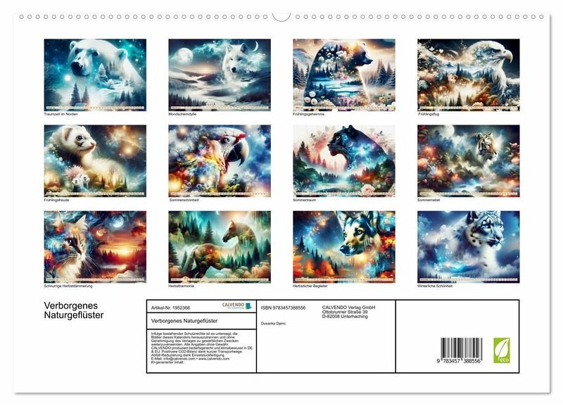 Erleben Sie ein Jahr voller Naturwunder und magische Tiere mit unserem einzigartigen Kalender. Lassen Sie sich von der schönen Natur verzaubern und tauchen Sie ein in eine Welt voller Schönheit und Harmonie. Jeder Monat enthüllt ein neues Bild mit einem Tier, das von atemberaubenden Landschaften umgeben ist. Gönnen Sie sich dieses besondere Erlebnis und lassen Sie sich von der natürlichen Magie verführen. Willkommen in die harmonische Welt der Natur.