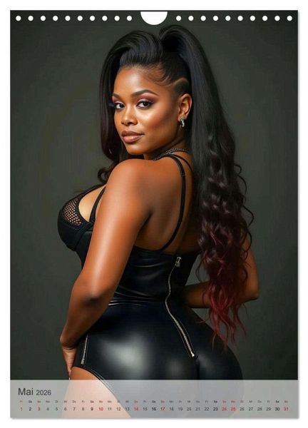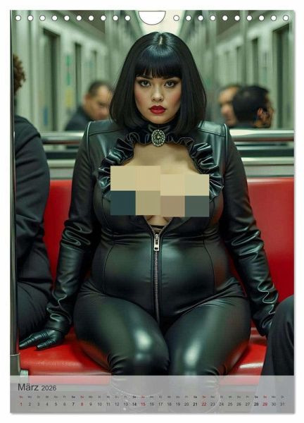 Ein aufregender KI-Kalender, der extrem kurvige Frauen in glänzendem schwarzem Lack und Leder präsentiert, sinnlich und kraftvoll inszeniert, mit einem Hauch von Dominanz und Eleganz.