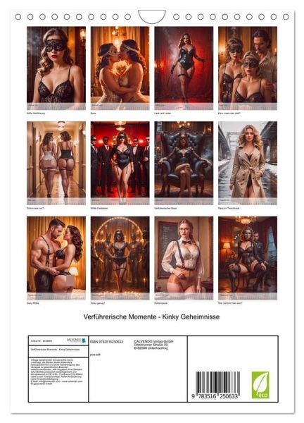 QUALITÄT - Hochwertiger Fotokalender mit 12 wunderschönen Motiven auf lichtbeständigem Bilderdruckpapier, robuste Spiralbindung mit Aufhängebügel.NACHHALTIG - deutliche Abfallreduzierung durch bedarfsgerechte Einzelstückfertigung, umweltfreundliches FSC-zertifiziertes Papier, Produktion in Deutschland, klimabewusste Logistik.PERFEKTES GESCHENK - Kalender für Freunde und Familie, für Kinder und Erwachsene, jung und alt, zu Weihnachten, Geburtstag oder zwischendurch.PERFEKTES GESCHENK - Kalender für Freunde und Familie, für Erwachsene, zu Weihnachten, Geburtstag oder zwischendurch.Der Kalender fängt, stilvolleund anspruchsvolle erotische Momente ein und zeigt verführerische Damen in sinnlichen Dessous, die in luxuriösen und künstlerischen, kinky Settings posen. von Autor(in): Fabian Junge