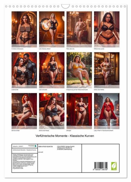 QUALITÄT - Hochwertiger Fotokalender mit 12 wunderschönen Motiven auf lichtbeständigem Bilderdruckpapier, robuste Spiralbindung mit Aufhängebügel.NACHHALTIG - deutliche Abfallreduzierung durch bedarfsgerechte Einzelstückfertigung, umweltfreundliches FSC-zertifiziertes Papier, Produktion in Deutschland, klimabewusste Logistik.PERFEKTES GESCHENK - Kalender für Freunde und Familie, für Kinder und Erwachsene, jung und alt, zu Weihnachten, Geburtstag oder zwischendurch.PERFEKTES GESCHENK - Kalender für Freunde und Familie, für Erwachsene, zu Weihnachten, Geburtstag oder zwischendurch.Ein verführerischer Kalender, in dem füllige und sexy Damen im eleganten Vintage-Look ihre sinnlichen Kurven mit zeitloser Schönheit und Stil präsentieren. von Autor(in): Fabian Junge